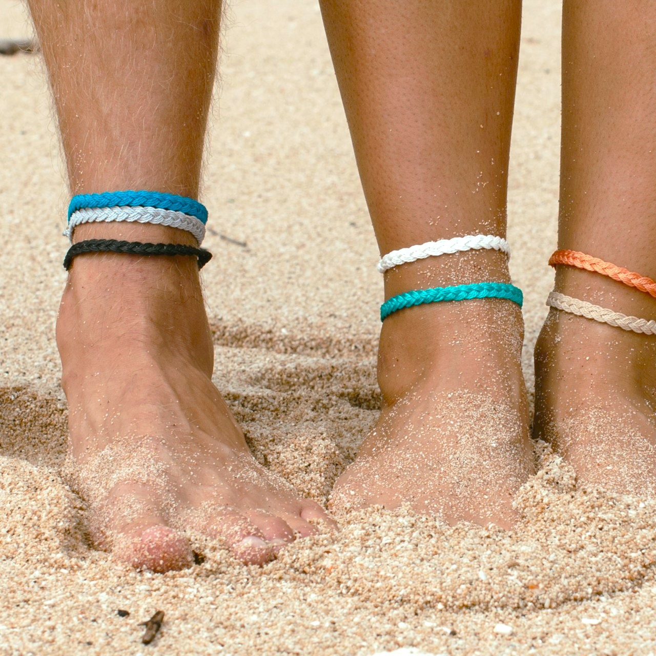 Als u op zoek bent naar een beetje glamour of gewoon een subtiele afwerking van uw persoonlijke stijl, ontdek dan de robuuste enkelbanden van Pineapple Island, die wij exclusief aanbieden als aanvulling op uw favoriete GUMBIES! Verzilverd of kleurrijk, verfijnd met kleine kralen of hangers: deze charmante accessoires zijn een bijzondere blikvanger - en voldoen bovendien aan uw eisen van ethiek en eerlijkheid.